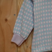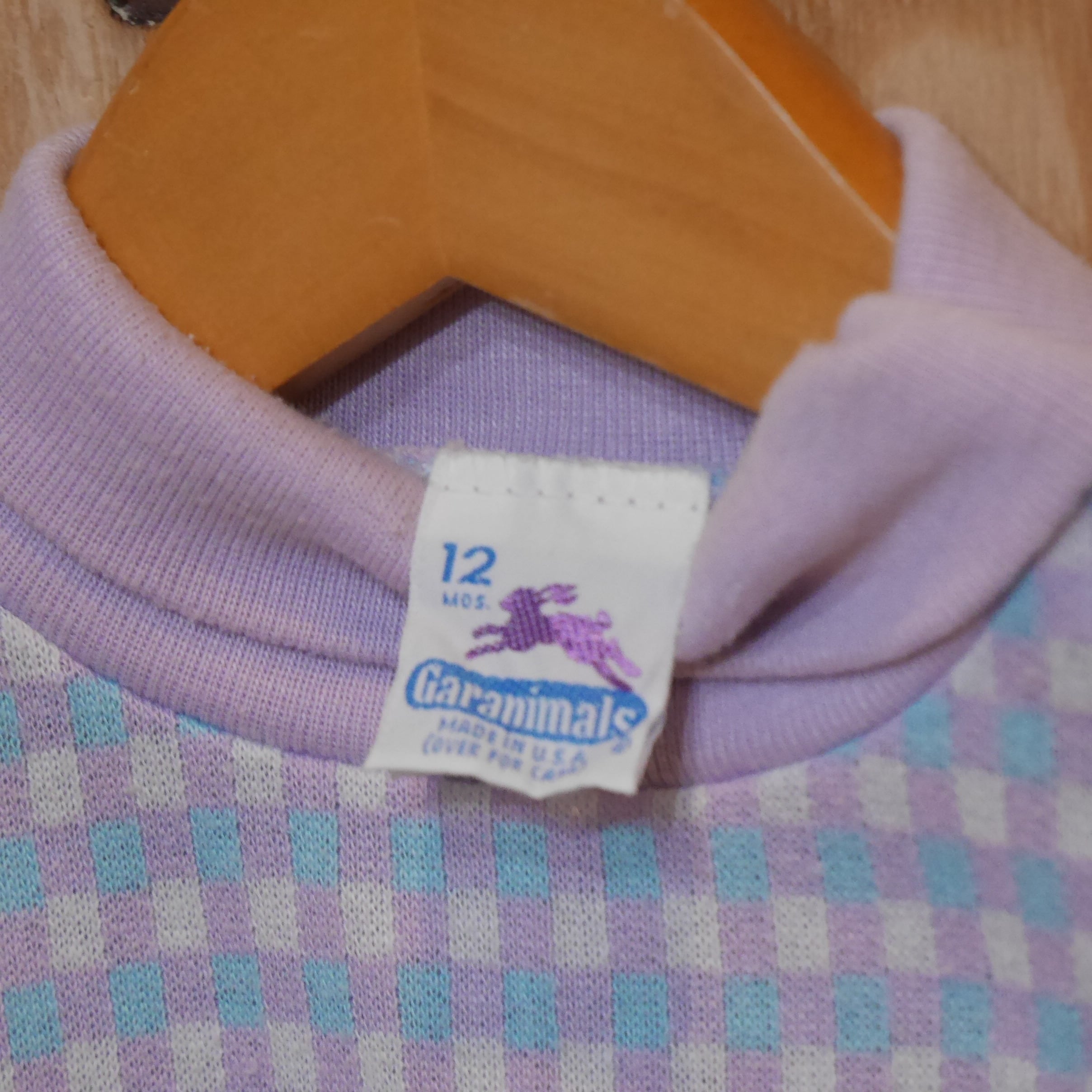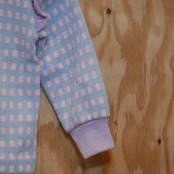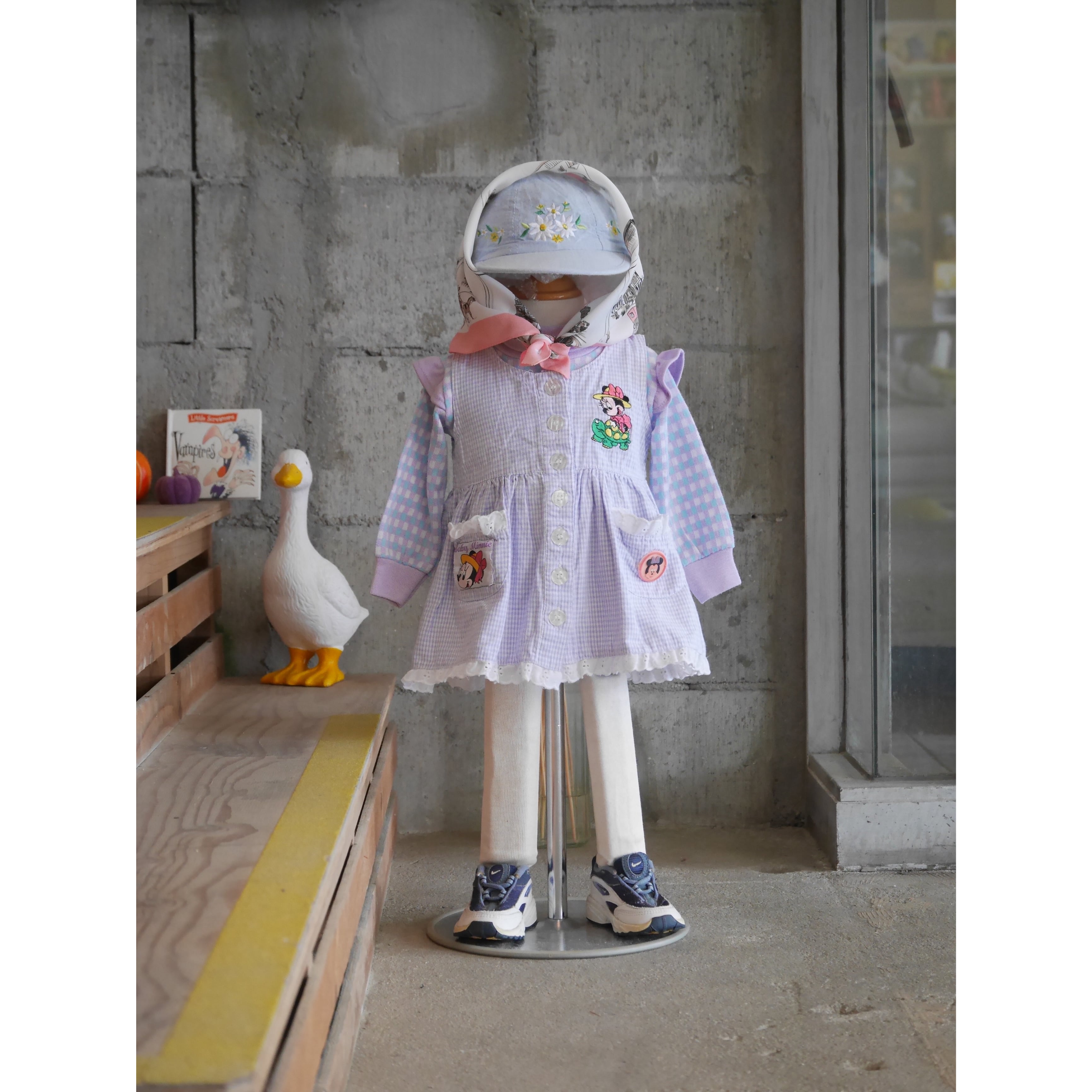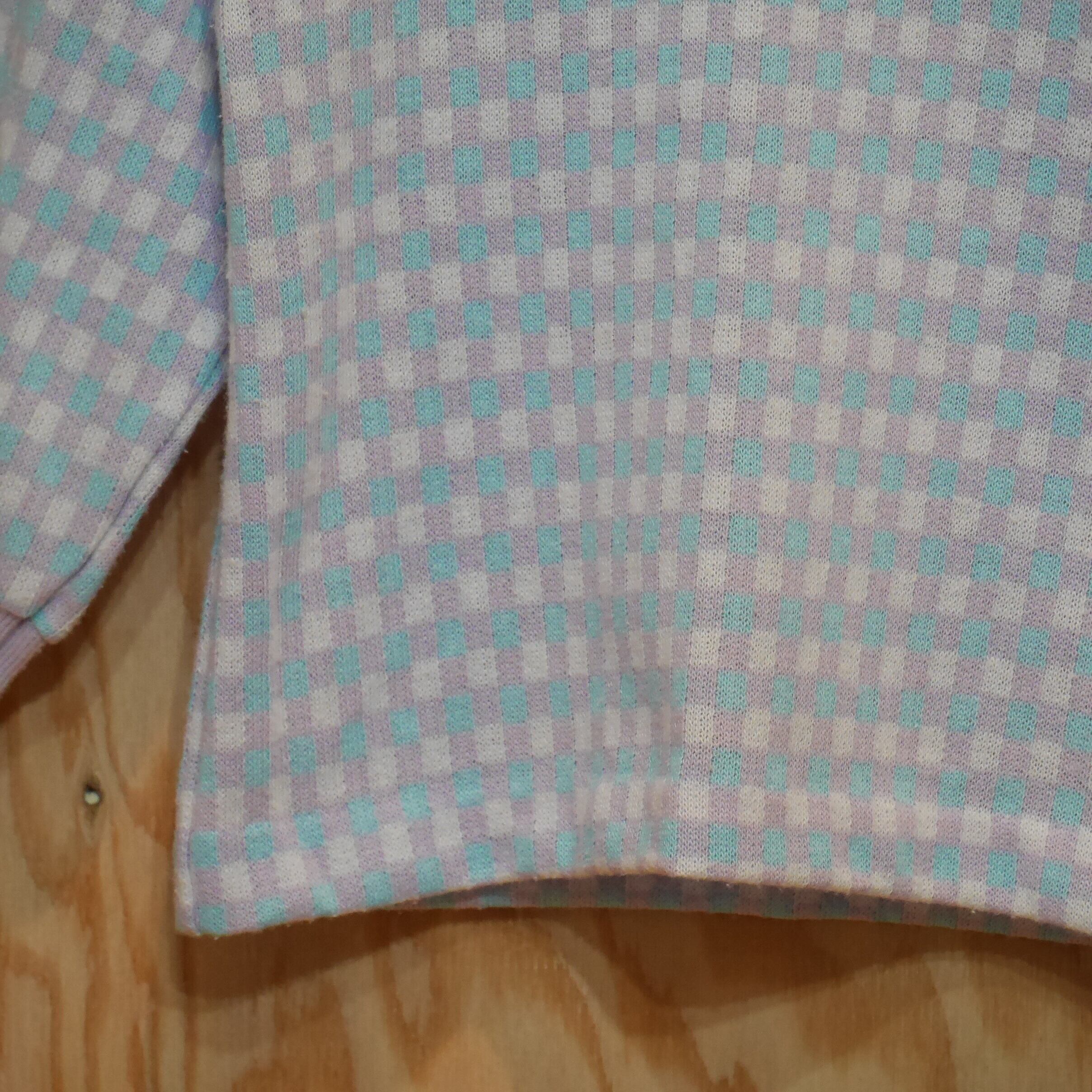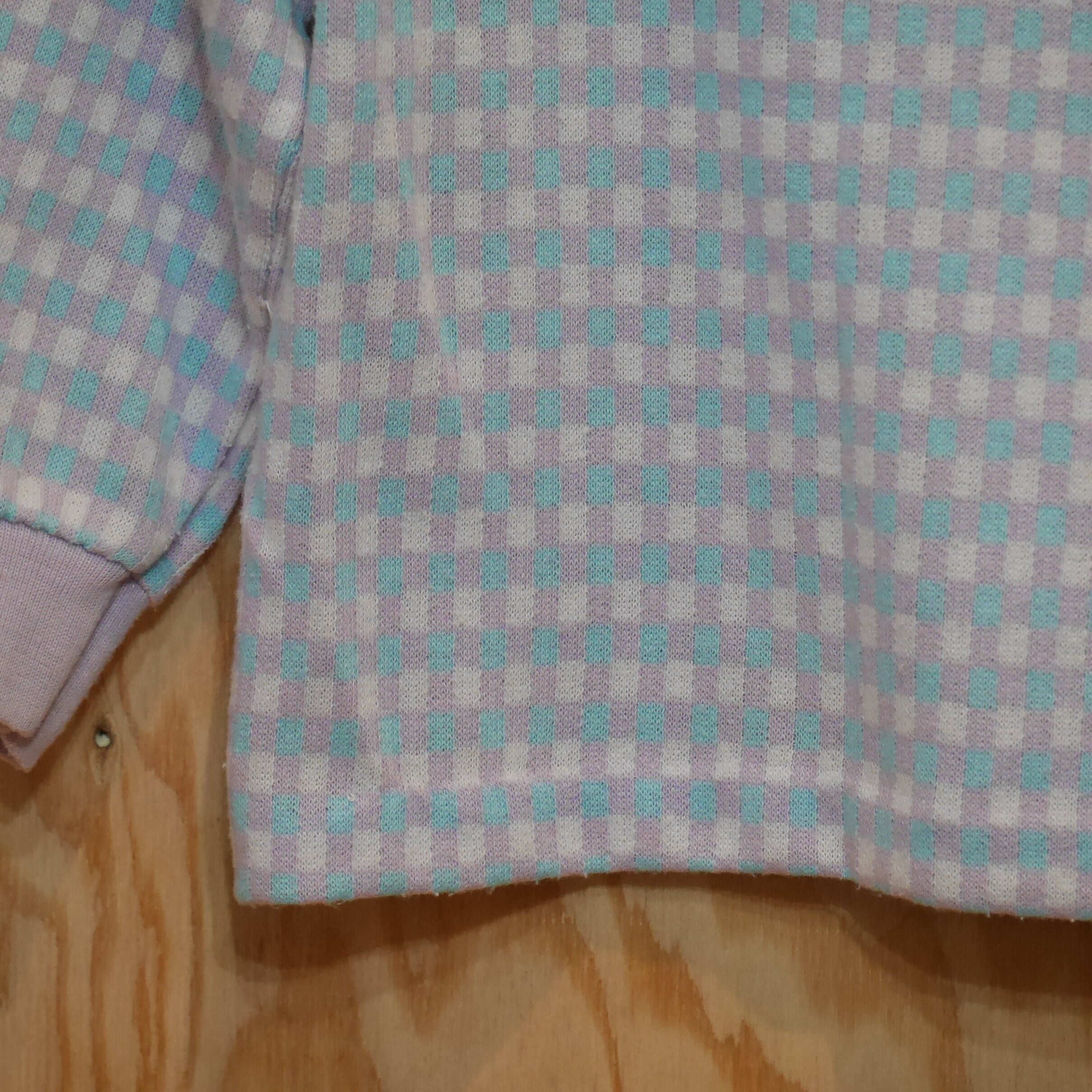 ラベンダーカラーをベースに水色と白色のチェック柄というファンシーな色合いが当時らしい一枚。肩にはショルダーフリルがついているのでよりガーリーな仕上がりに。