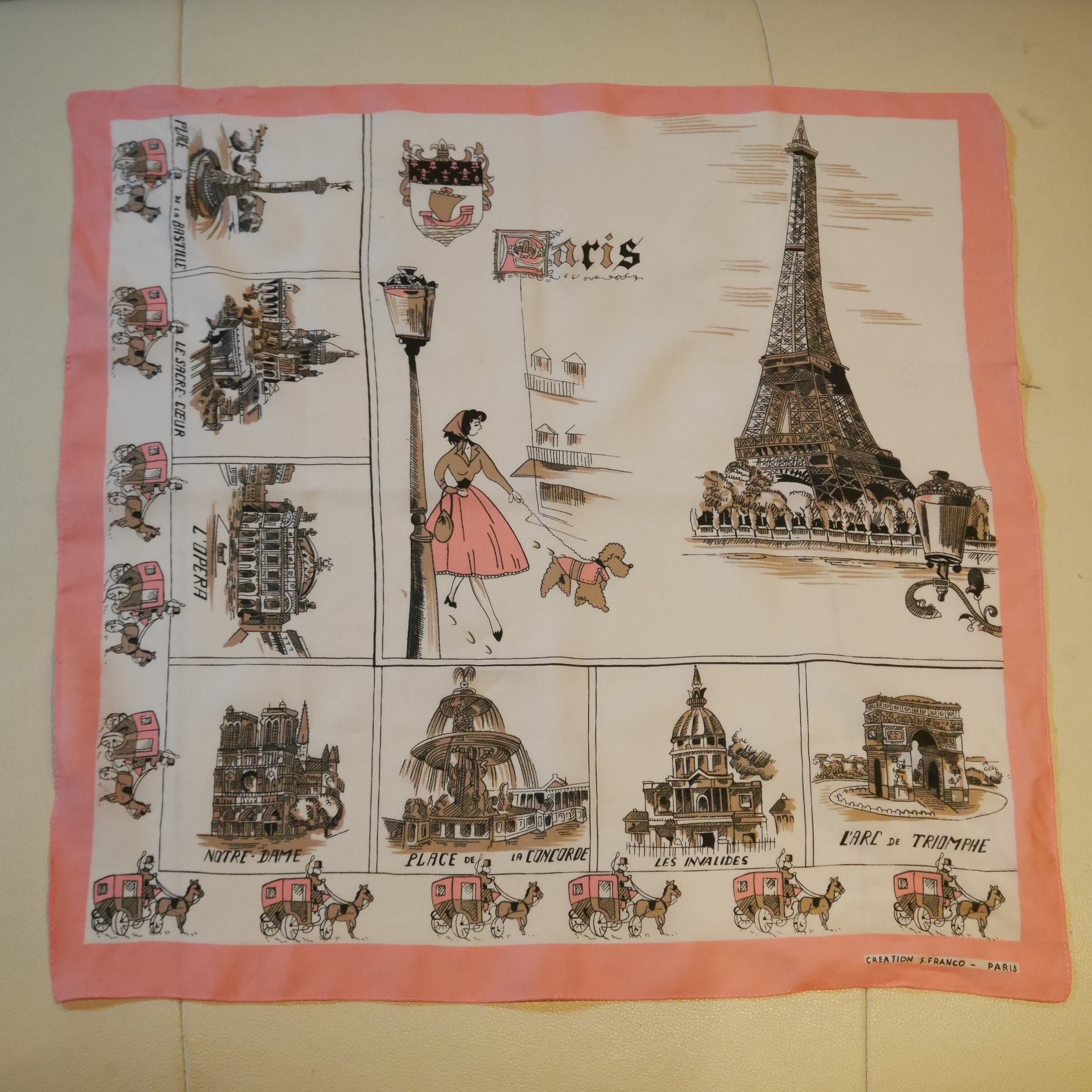 50-60s Paris Tourist Scarf Pink