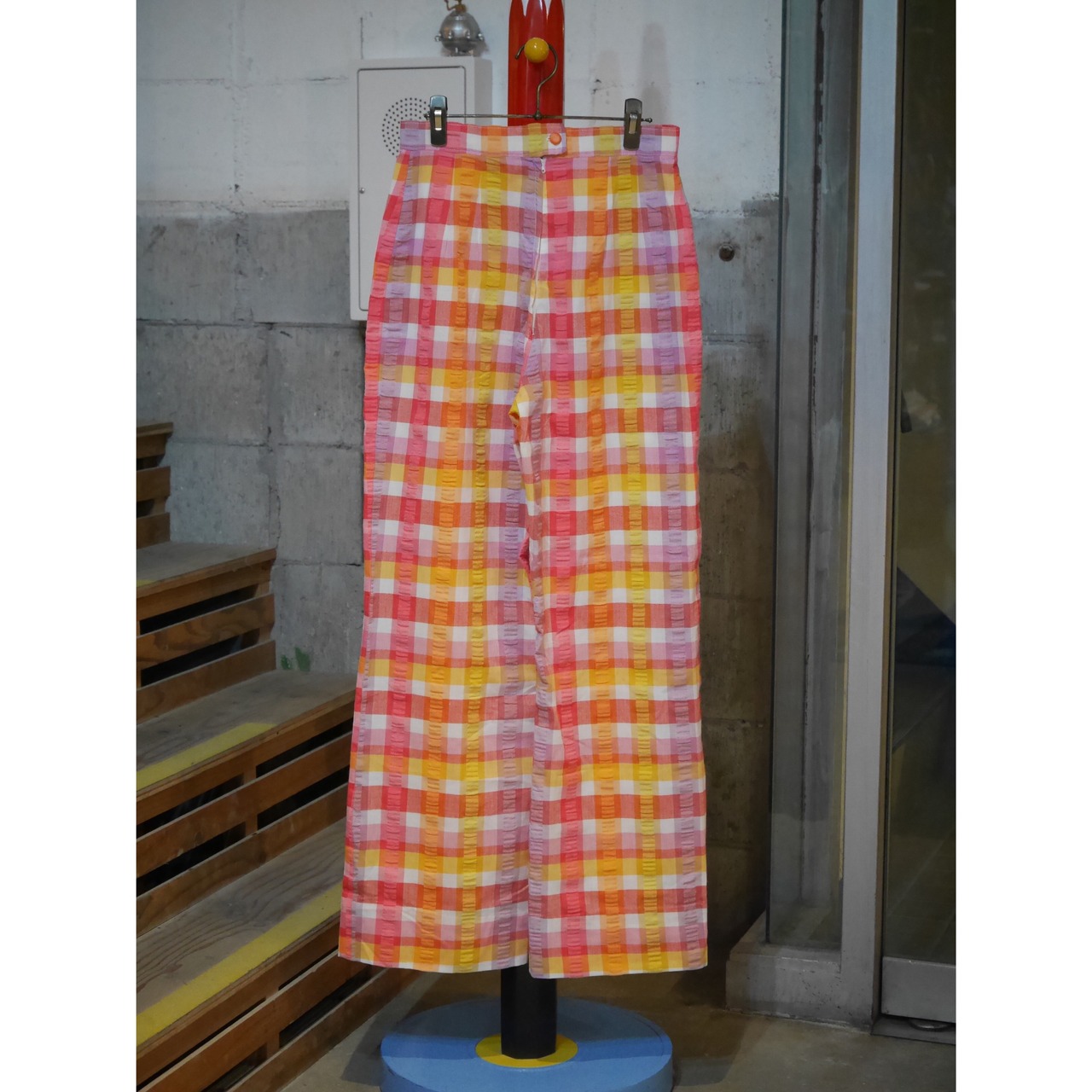 色合いが可愛いギンガムチェック柄のフレアパンツ。1970年代頃。