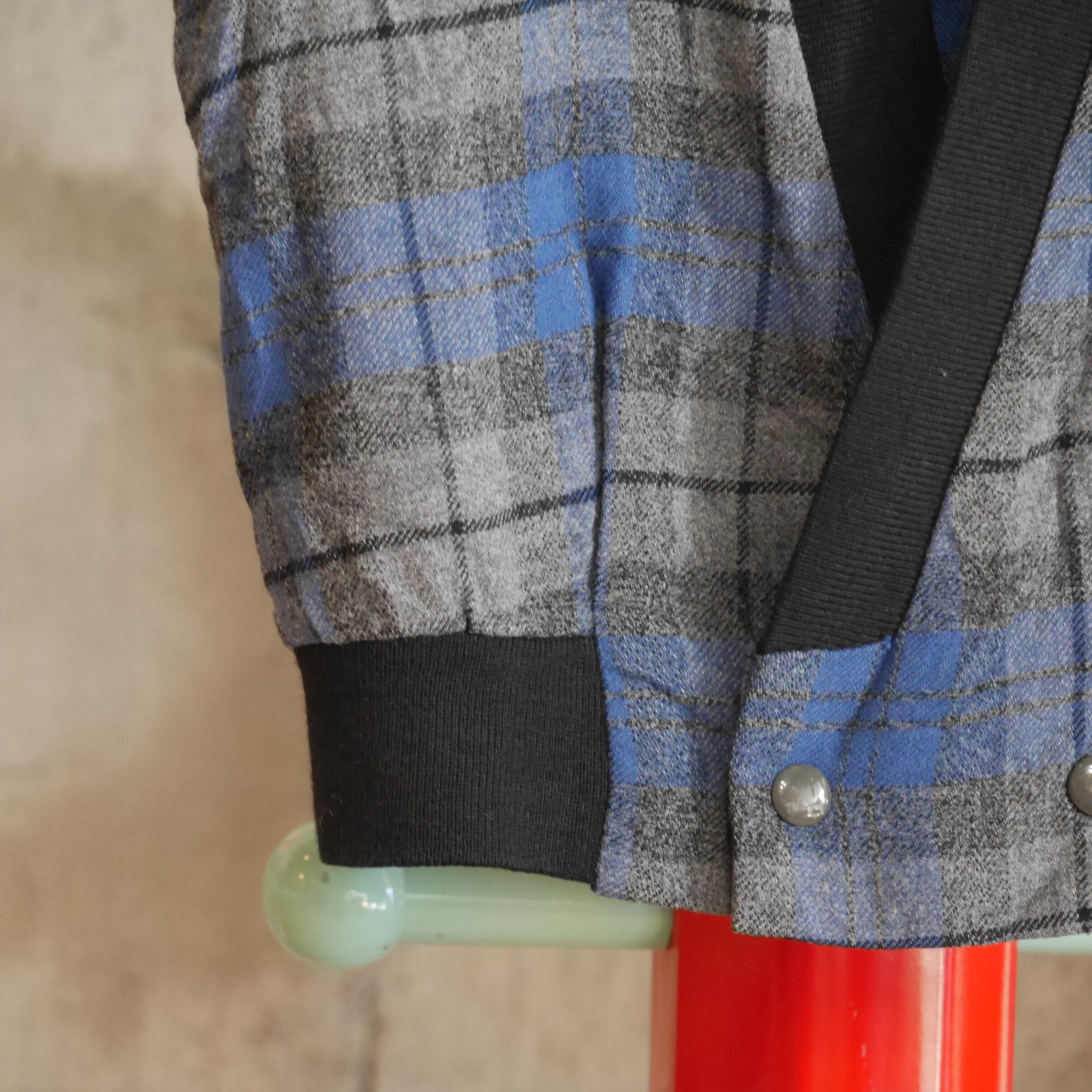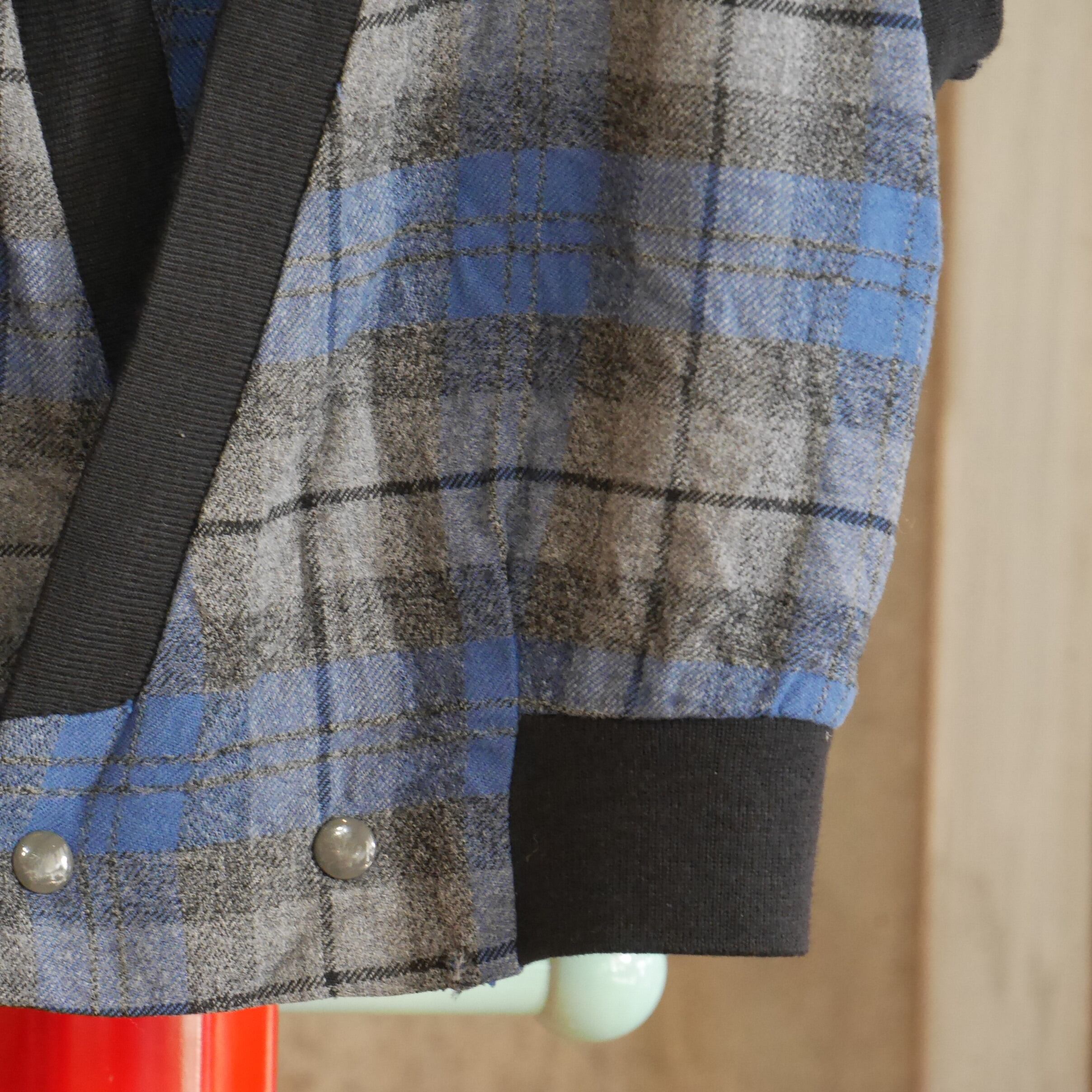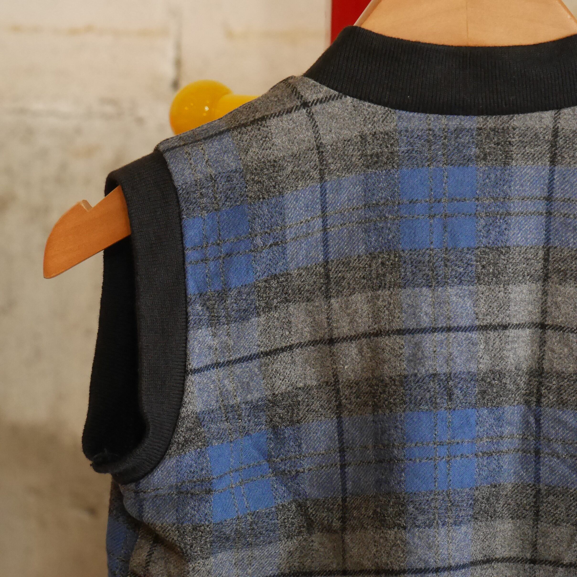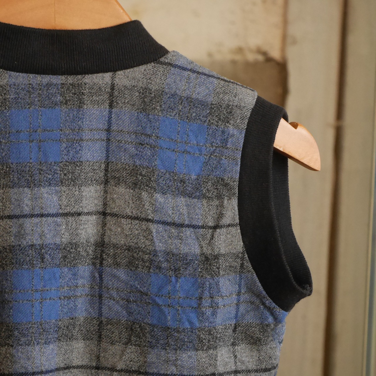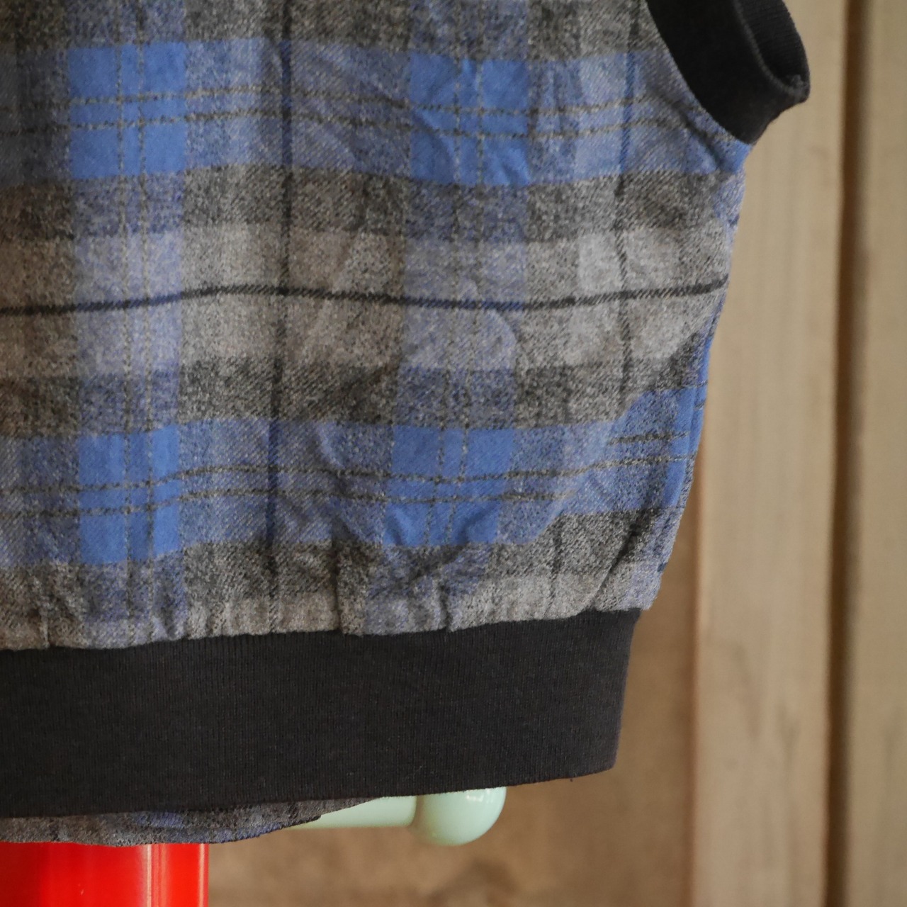 グレーと青のチェック柄がオンブレチックで当時らしい風合いです。深めのVネックで着物のように重なったフロントと、一般的なベストとは一味違ったお洒落さがあって面白い一枚です。