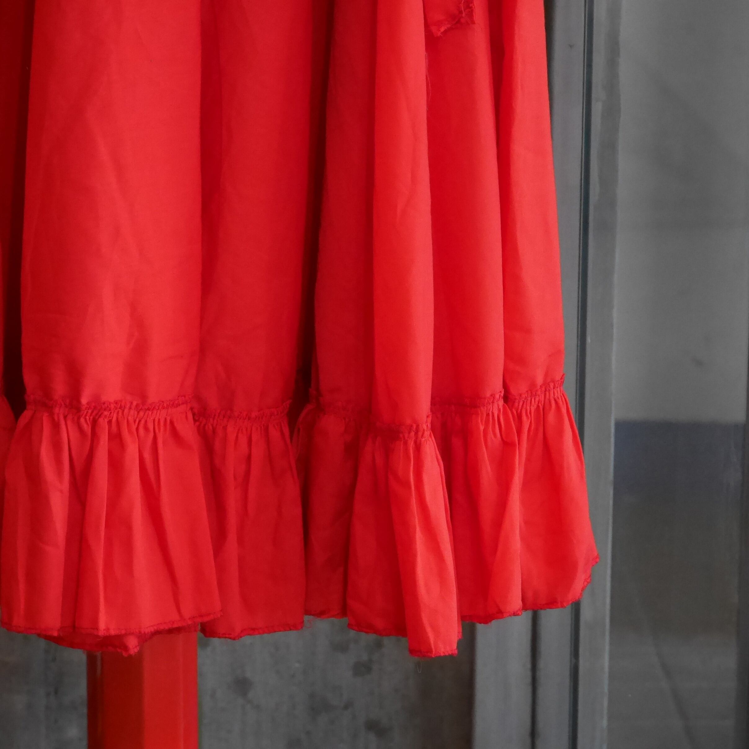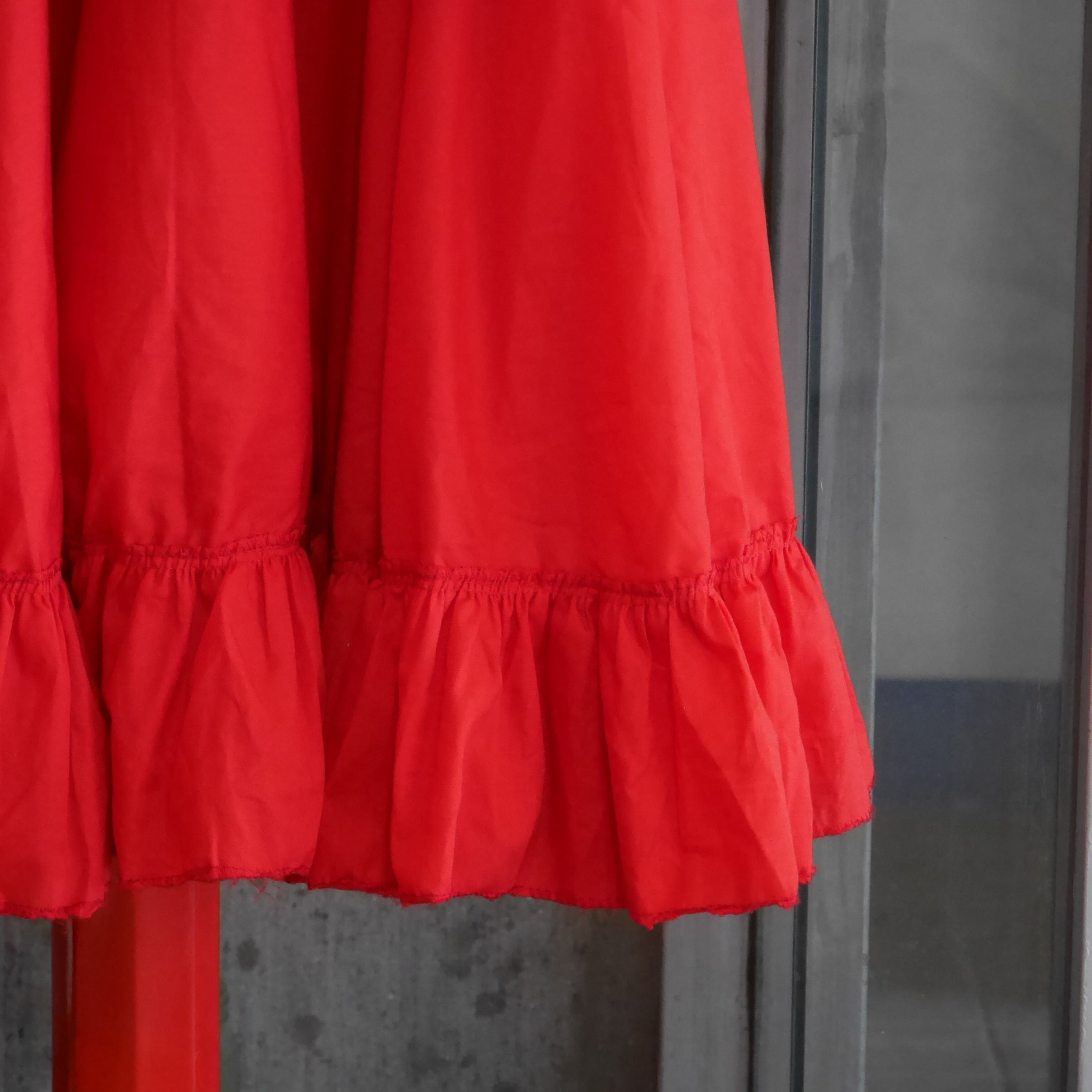 一段のティアードでも十分ボリューミー。薄くて張りのあるポリコットン生地なのでドレープも生まれやすく、動くたびにゆらゆらと揺れるシルエットが非常に可愛いです。