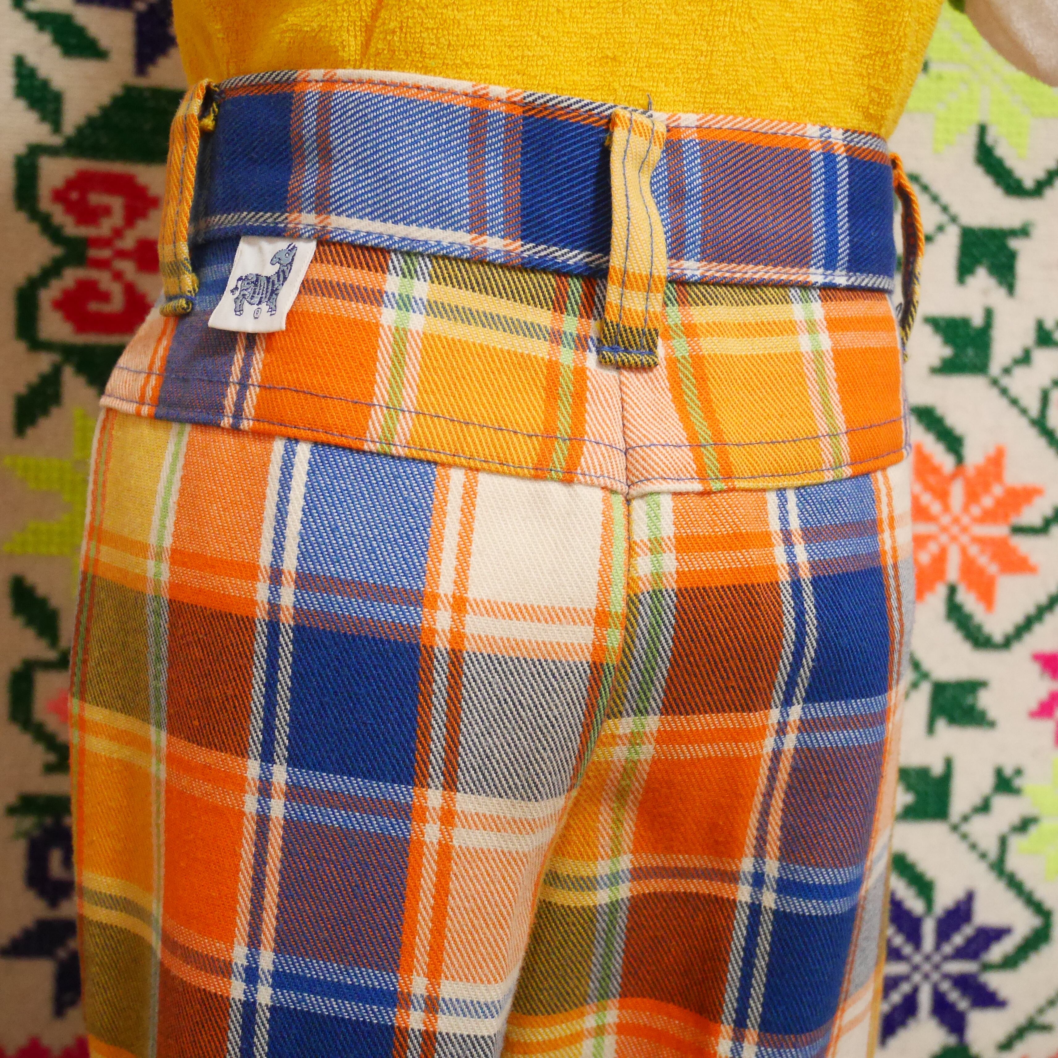 70s plaid flare pants