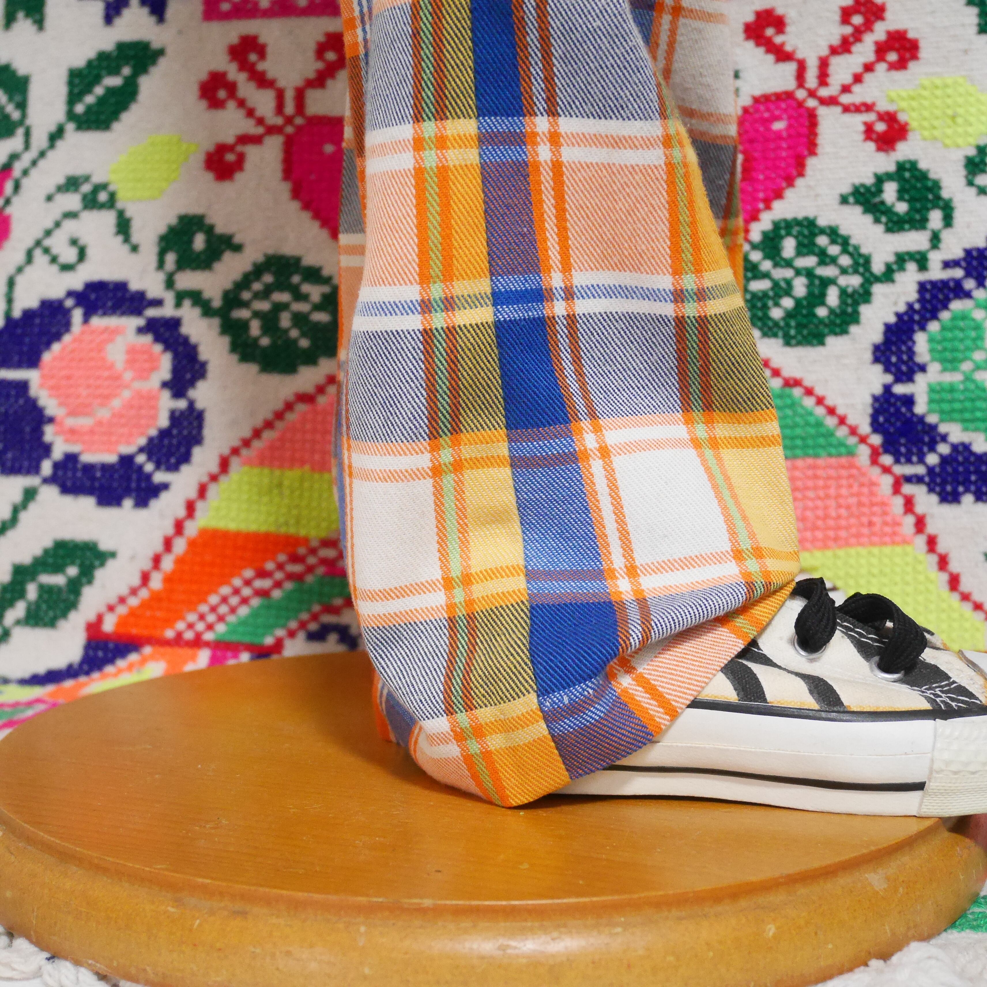 ビタミンカラーのオレンジと爽やかなブルーと組み合わせが抜群のチェック柄。春夏に着たくなる色合いですね…!