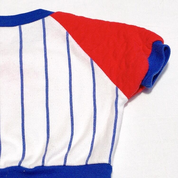 ラグランスリーブにストライプ柄のフロントボディとまさに野球のユニフォームのようなデザイン!スポーティでカジュアルなアイテムです ⚾︎⸝⋆