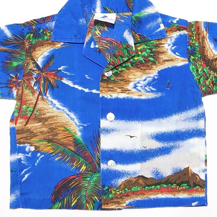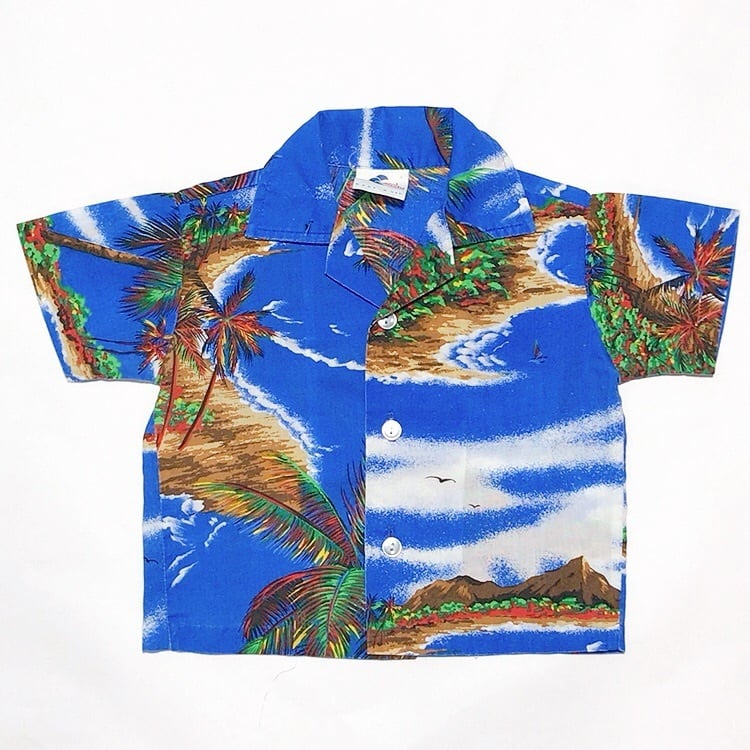 青い空・白い雲・青い海のハワイらしい爽やかなハワイアンシャツです *