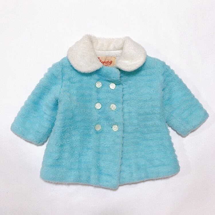 愛らしいファーに上品なダブルボタンスタイルですが、水色の爽やかさで甘さが抑えられて少しカジュアルに使えそうですよね ♬