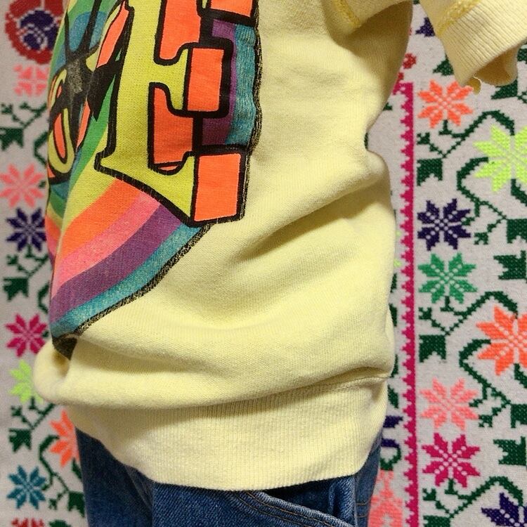 愛と平和を願うヒッピーだからこそのプリントデザインがとっても可愛いです ❤︎ ボディの色も春にぴったりな淡い黄色でフロントプリントがよく映えます ❤︎