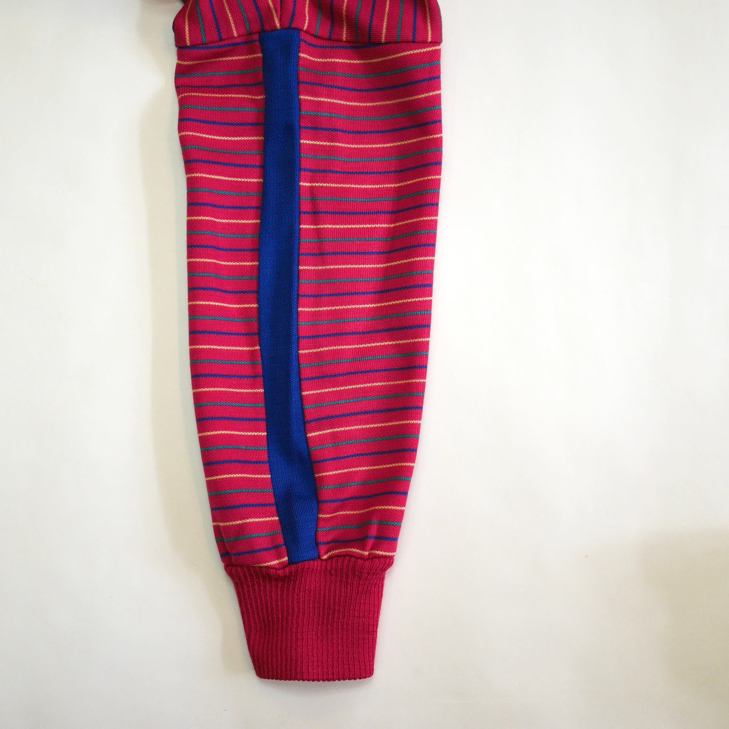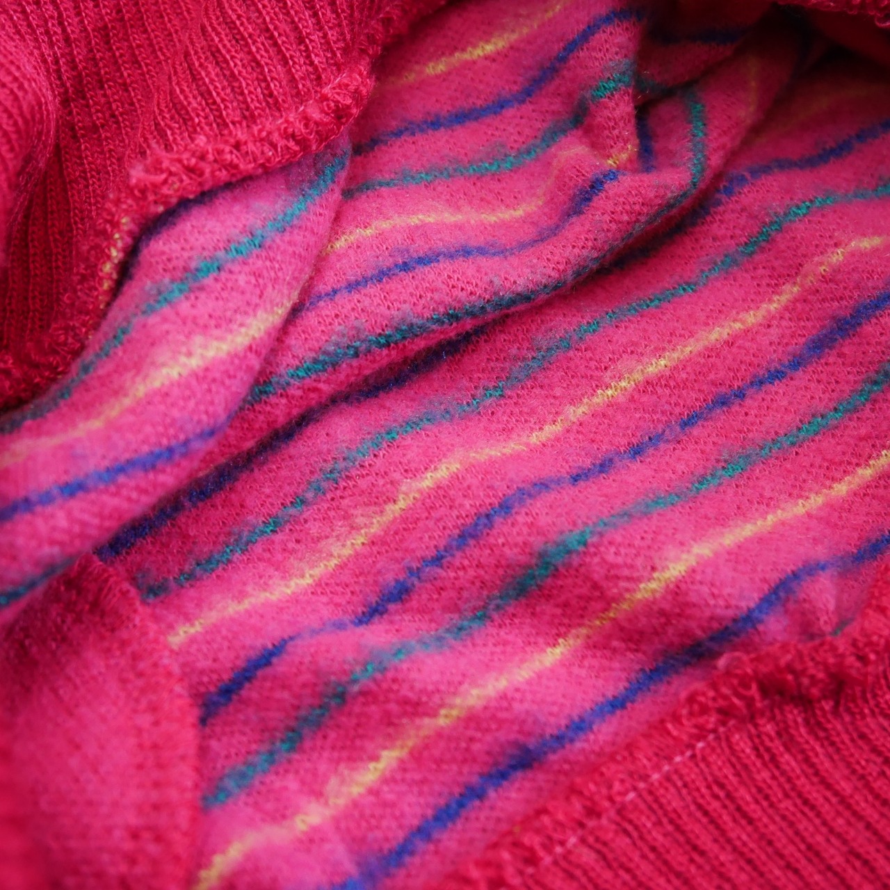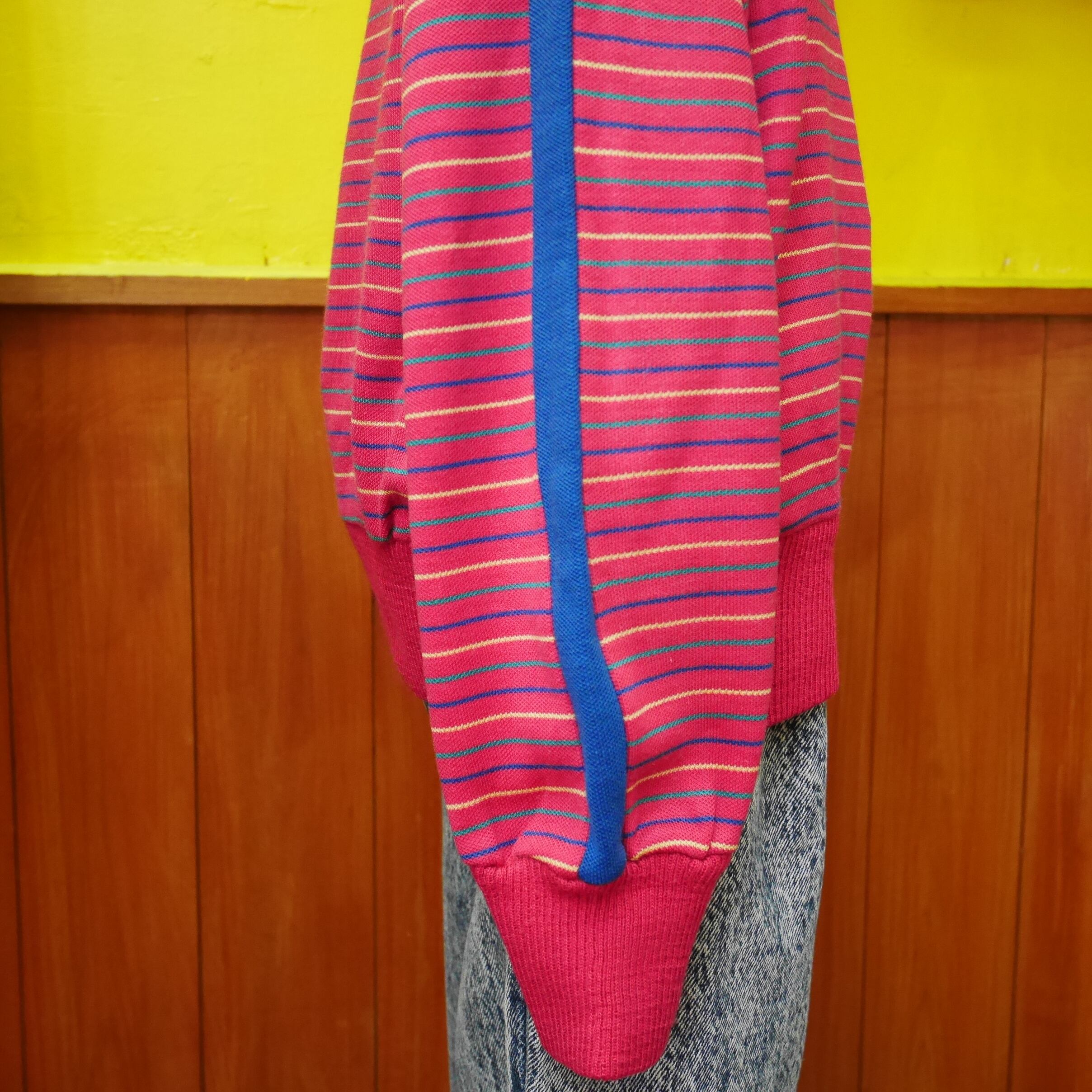 マゼンタピンクをベースにマルチ細ボーダーのボディに抜け感のあるドロップショルダー、袖にのみあるネイビーカラーのアクセント、ストライプに切り替えられた細長い胸ポケット、そしてサイドに実は隠されてたポケット。特に最後のサイドポケットは大人の古着でも高く評価される機能性で、あると必ずテンションのあがる good ポイントです!!!