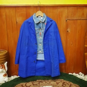 鮮やかなブルーが非常に綺麗で印象的なコートです。ショップコートはもともと来客が来た時に作業服を隠す為に羽織るものとして使われていたので見た目はシンプルなのが特徴です。だからこそこれをプラスするだけで都会的な垢抜け方をするスタイリッシュなアイテムです ♫