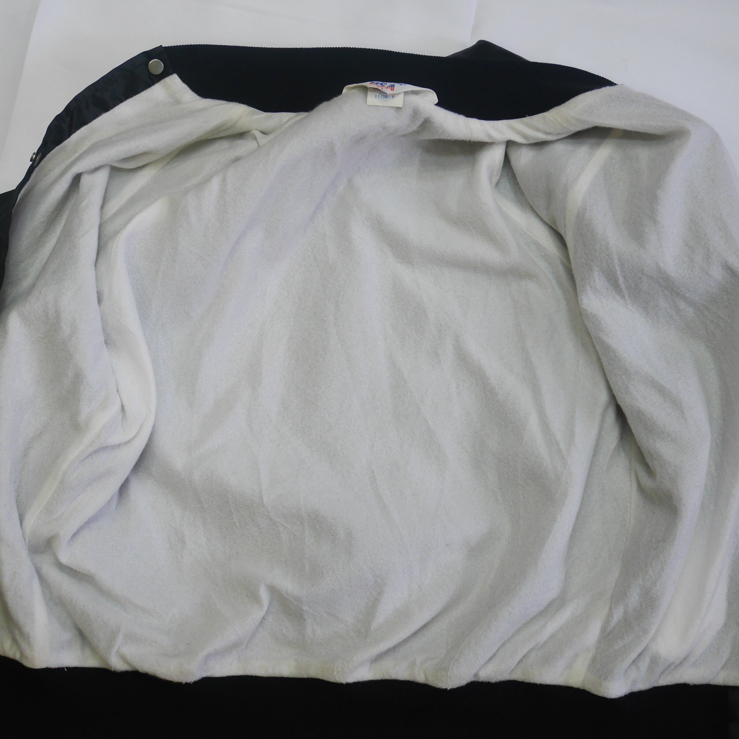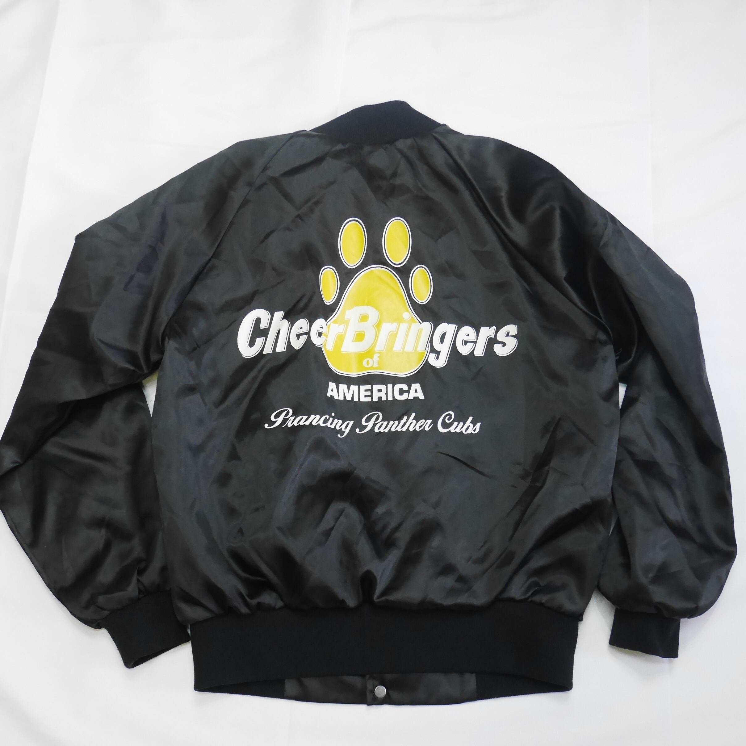 アメリカのどこかは分かりませんがとあるチアリーディングチームのチームブルゾン!バックに大きくプリントされた足跡がブラックボディとのコントラストで非常にクールです ◎°. フロントの胸元には「ステファニー」という記名入りも古着らしいポイント ♬