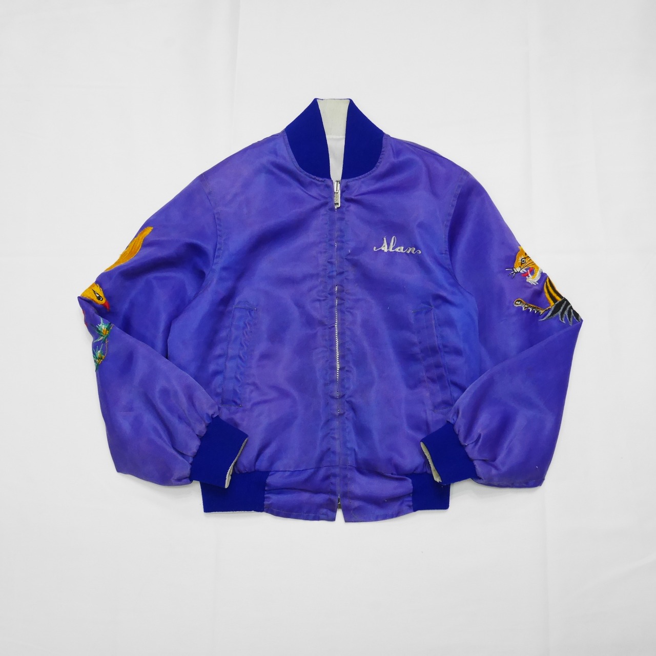 中国というより台湾のスーベニアでしょう!背中のデザインは国の形が記されたアイテムもありますがこちらは龍が二匹の刺繍。そして右肘には虎、左肘には鷲の刺繍があり、フロント胸元には「Alan」と記名入り。