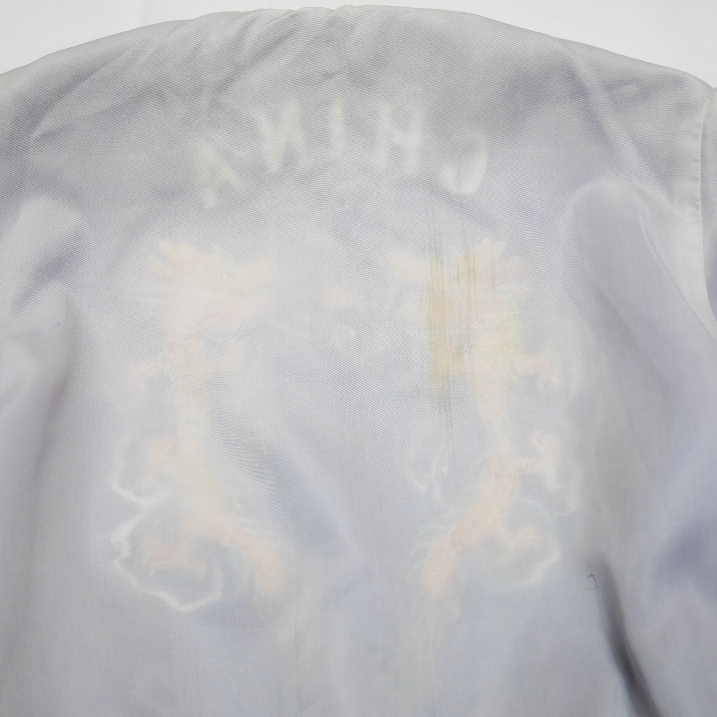※ あまり気にならない程度ですが全体的に薄らと焼けがございます。フロント左側に小穴あり。裏面に汚れあり。