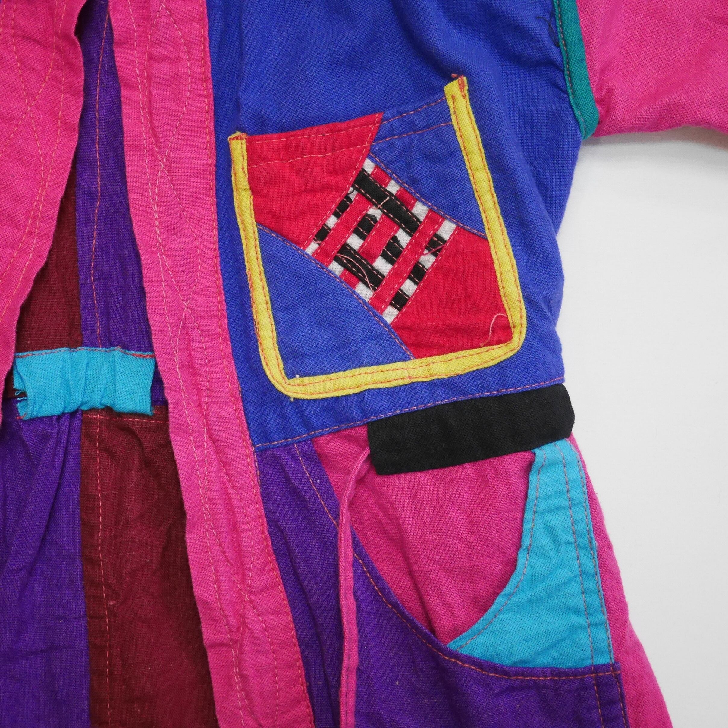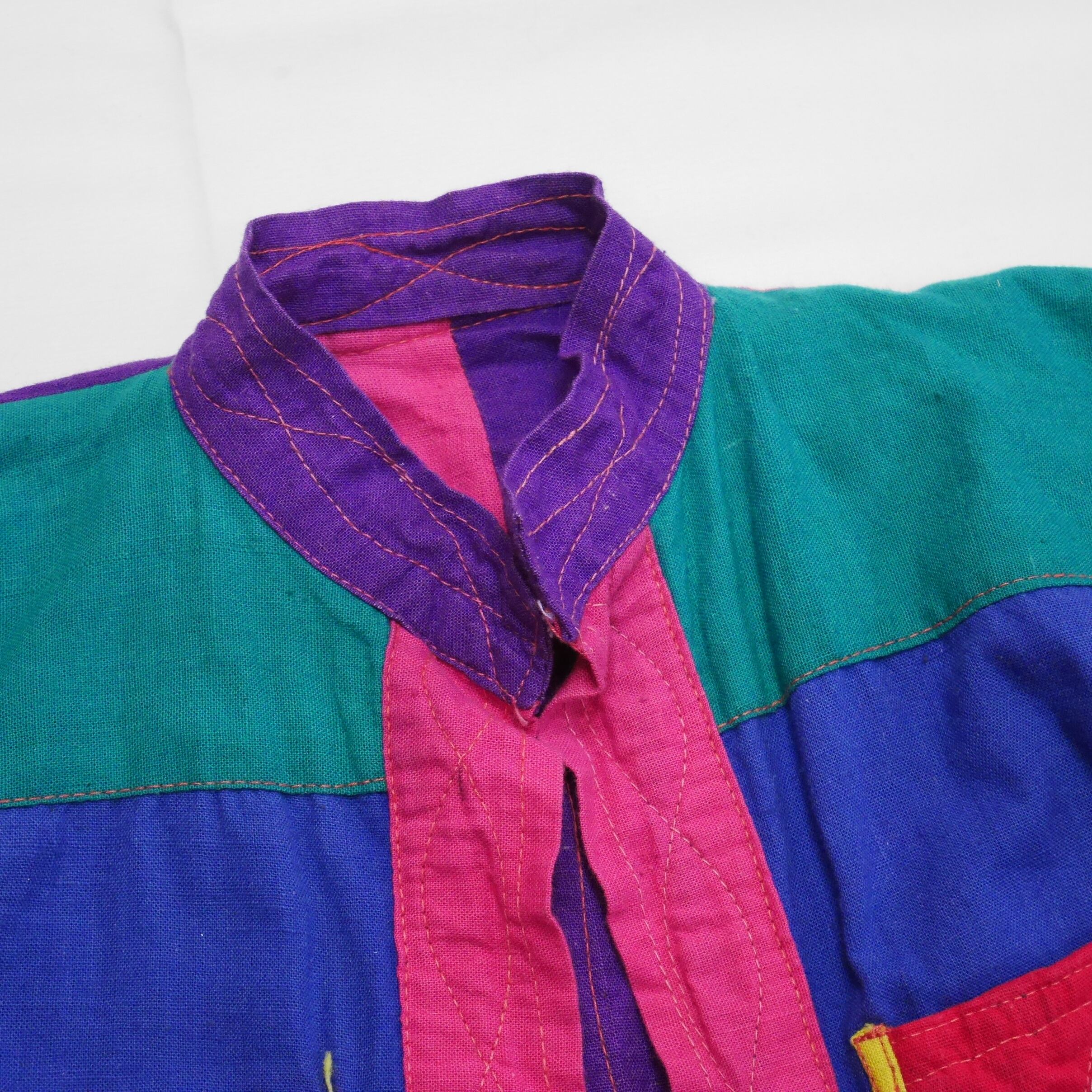 オールリアルパッチワークで作られたクレイジーパターンのクレイジーさ。笑 異彩を放つそのクオリティの高さに思わず心惹かれる一枚です。リバーシブルなのでこのクオリティが2つ楽しめます。裏面はまた異なるクレイジーパターンなので1枚で2着分を堪能出来ます。