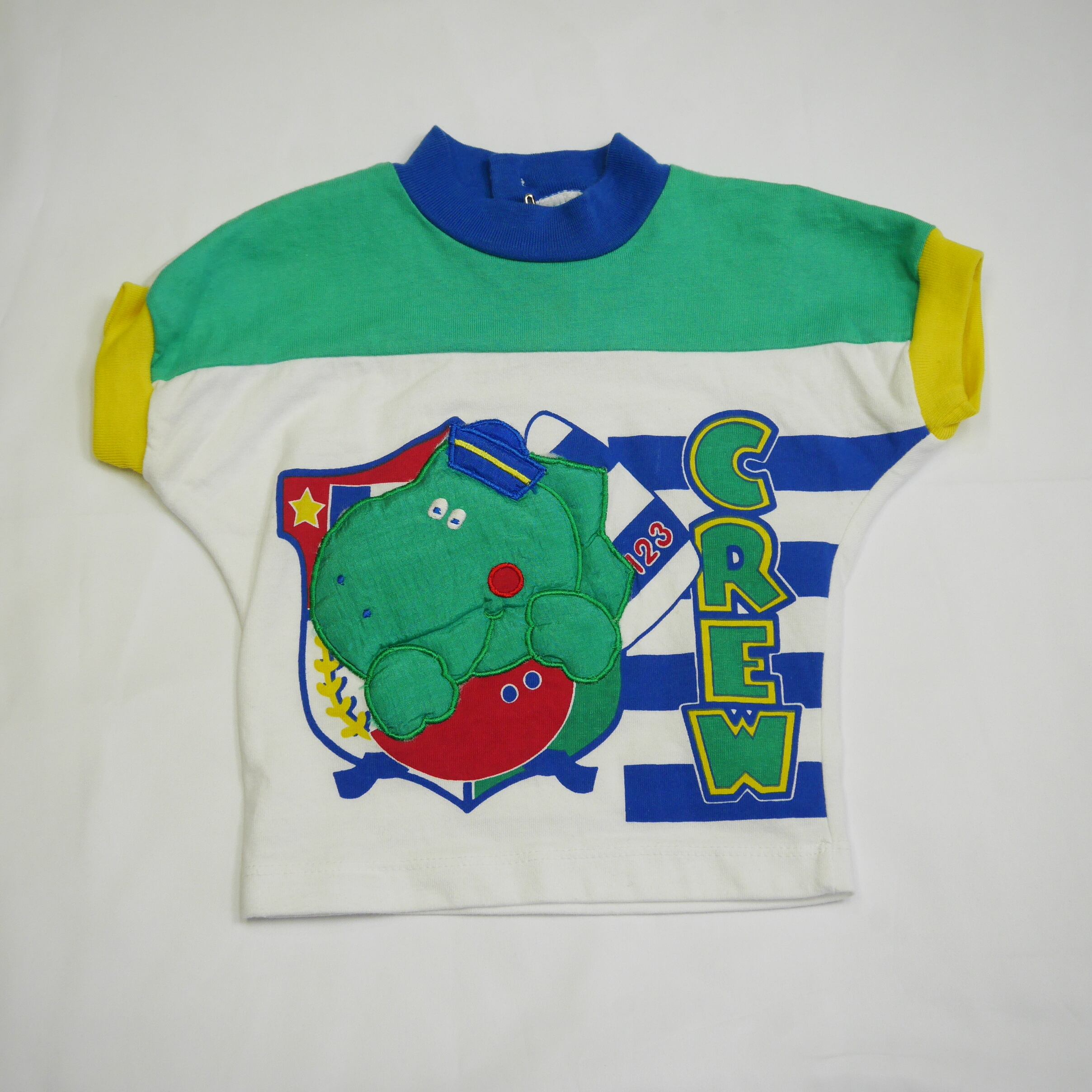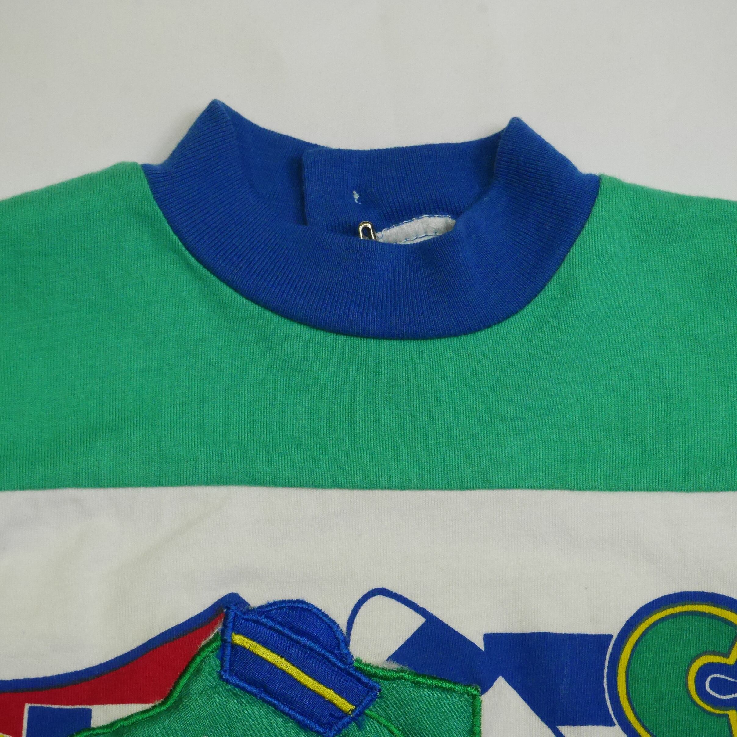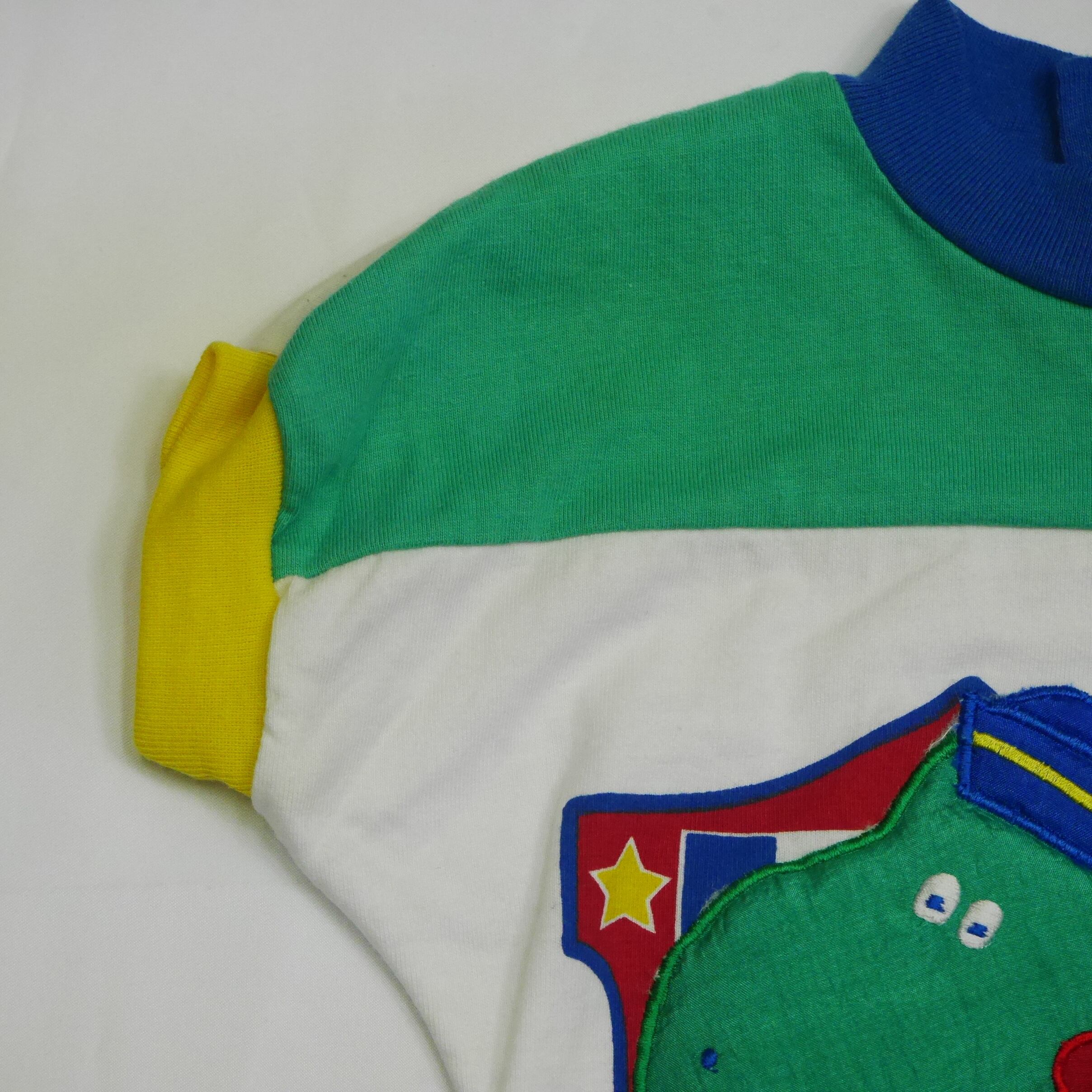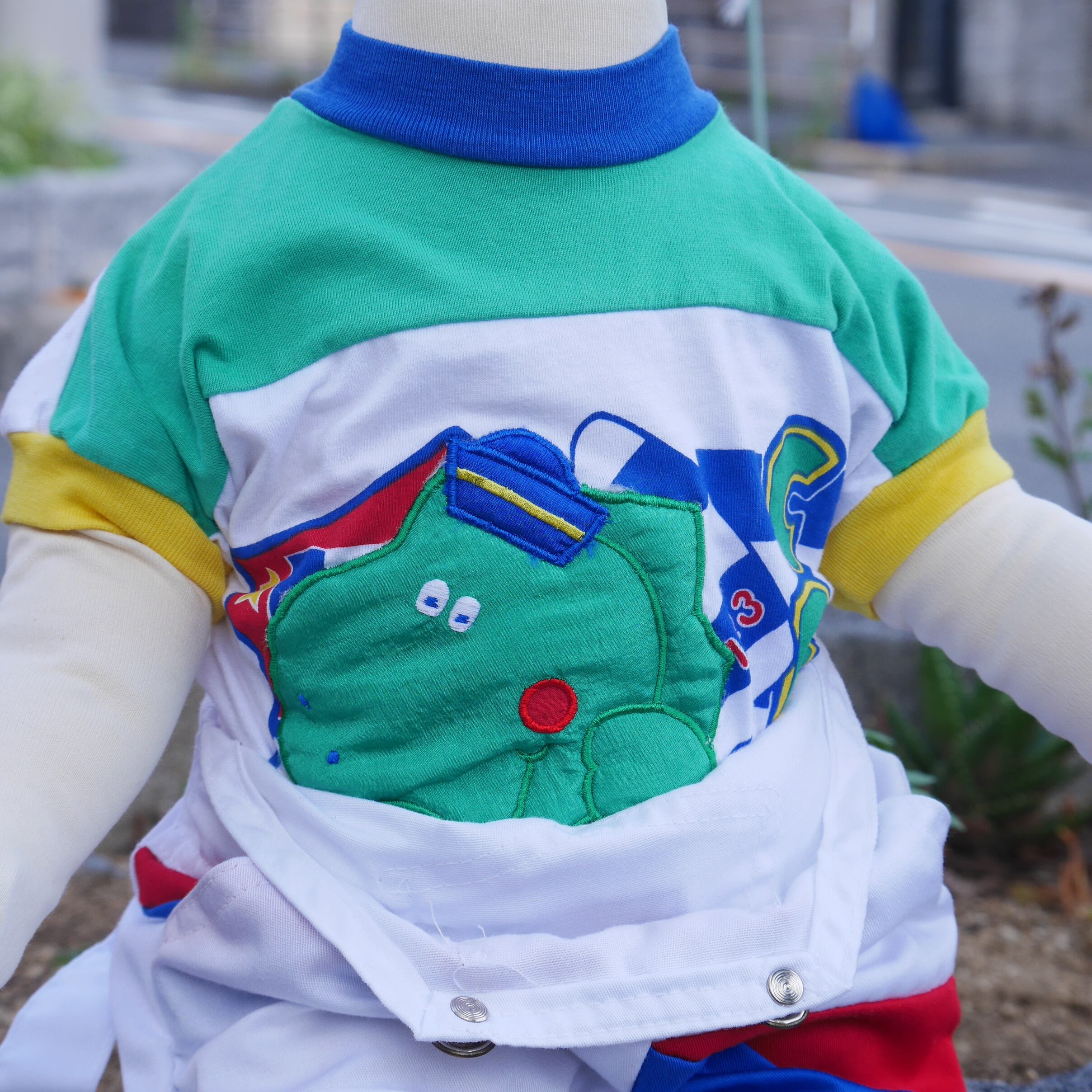 マリンスタイルの恐竜が cute。しかも恐竜の部分だけナイロンっぽい生地になっているに加え、中綿が少し入っている工夫がされており、アメリカ古着らしい遊び心が伺えます。