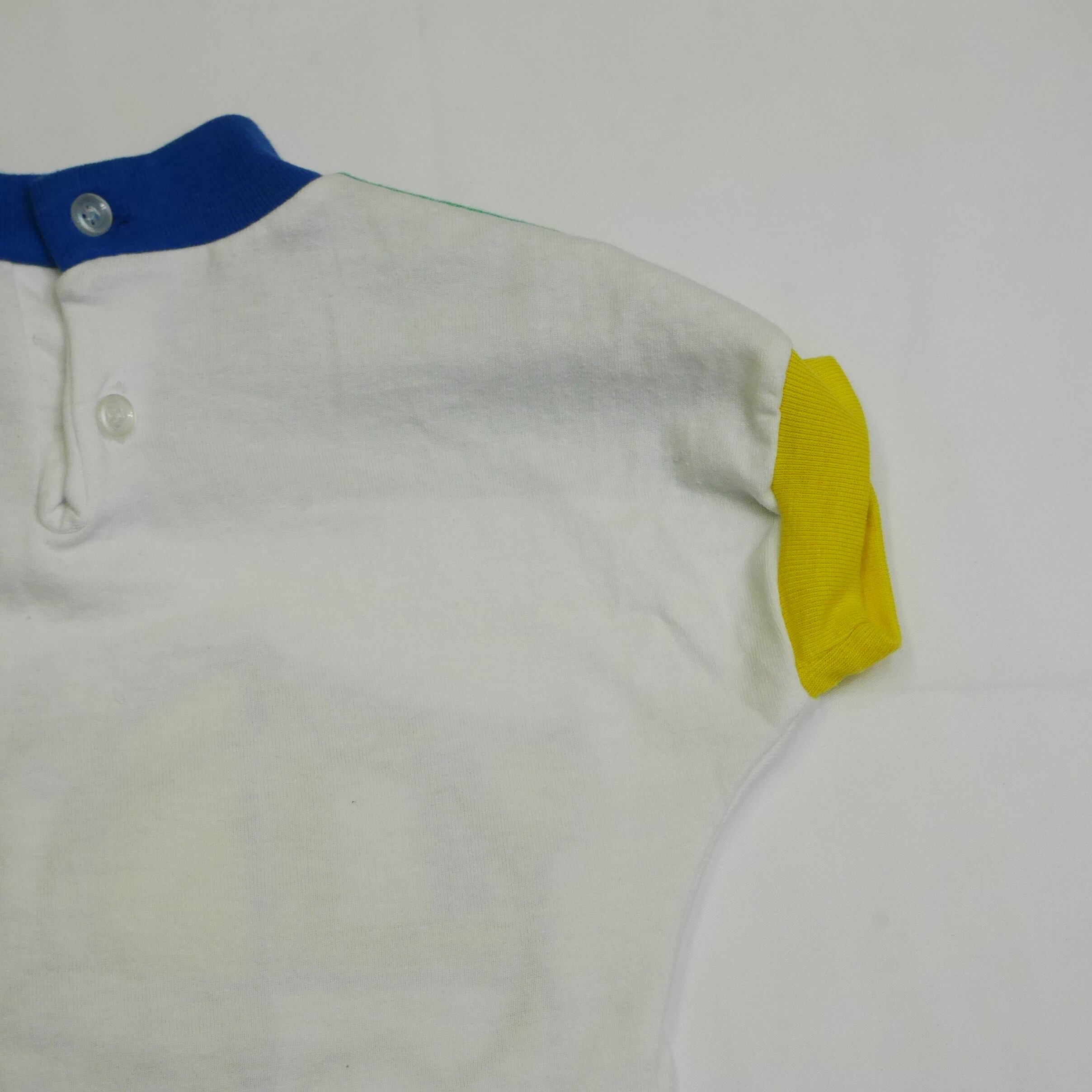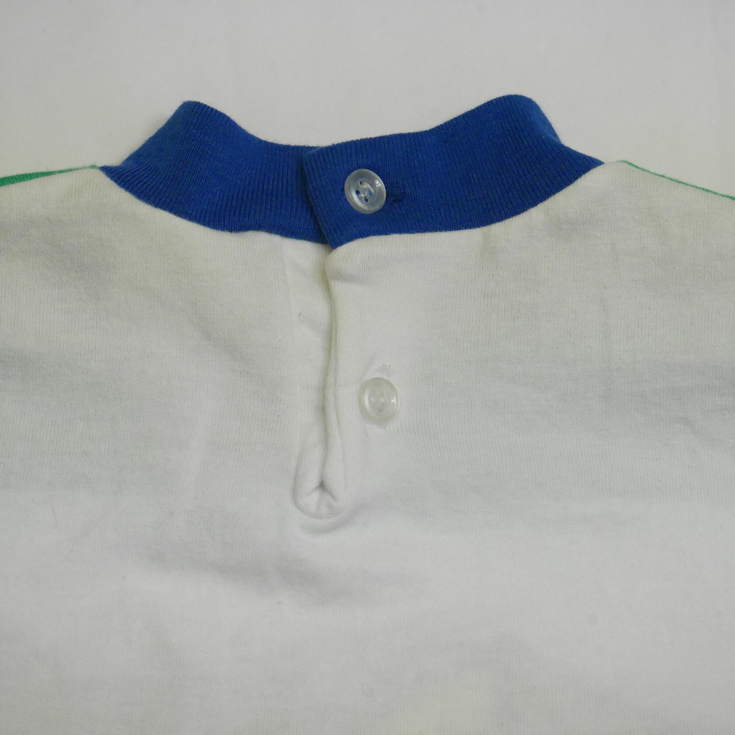 首と袖口とで色が異なるリンガーや胸で切り替えられたボディなど、ボディ上部の色使いが非常に豊かなのでオーバーオール等のインナー使いにも最適です。