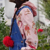 パジャマシャツと一見聞くと扱いにくいイメージがある中でピンクベースにお猿さんの総柄というなんともキャッチーなデザインが非常にキッズらしいので比較的扱いやすいパジャマシャツじゃないかと思います。でも、羽織ると一般的なシャツとは一味違う、パジャマシャツだからこそのハズしが効いたお洒落アイテム。