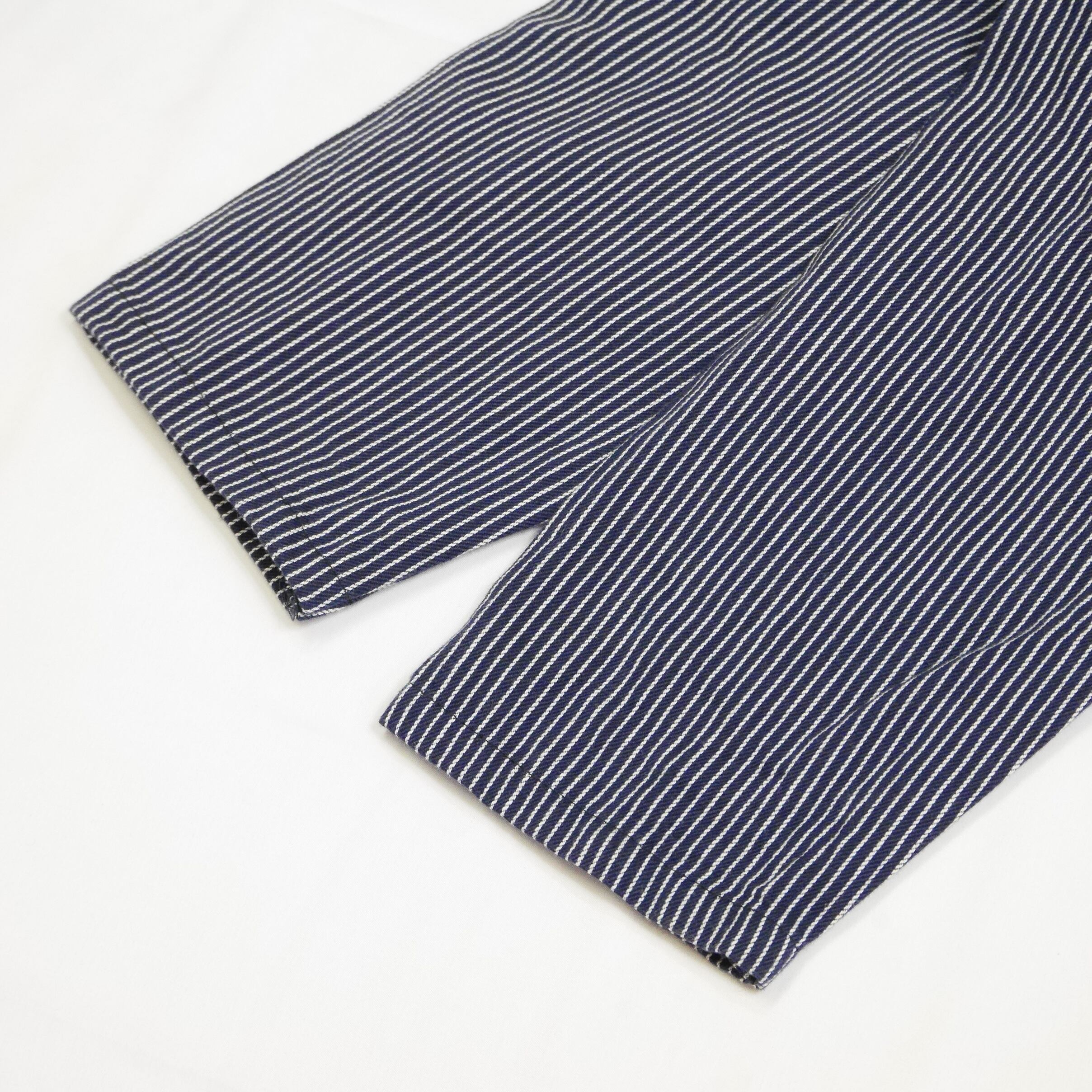 フィッシャーマンシャツといえばプルオーバーが一般的なディテール。こちらはフード付きのタイプなので、あまり聞き馴染みのない方でも親しみやすいカジュアルさが魅力的です。よく見るとストライプ柄がロープのような模様であったりと名残があるのも面白いですね。