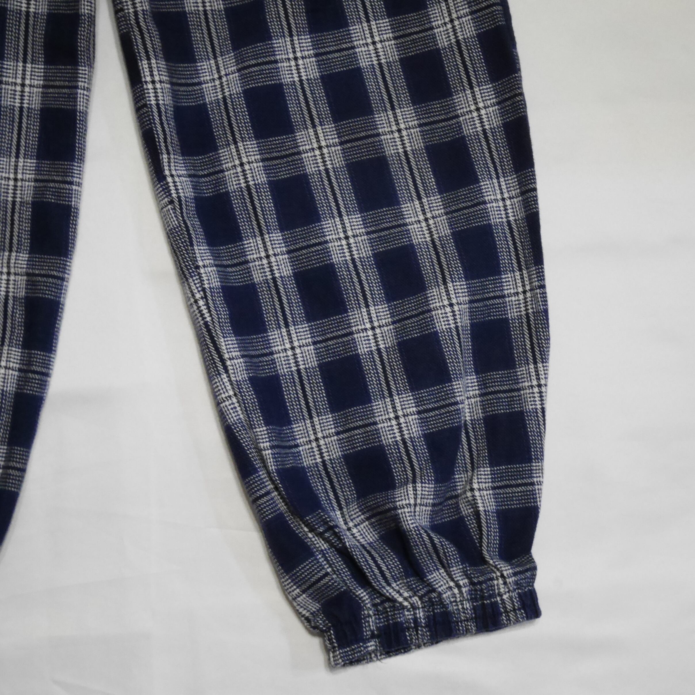 シルエットはゆったりとし、ウエストも裾もゴムでリラクシーでありながらネイビーベースのクラシカルなグレンチェックでラフすぎないイージーパンツ。綺麗めな印象さえもあるのでトップスにこのパンツなだけでも十分お洒落を楽しめます。