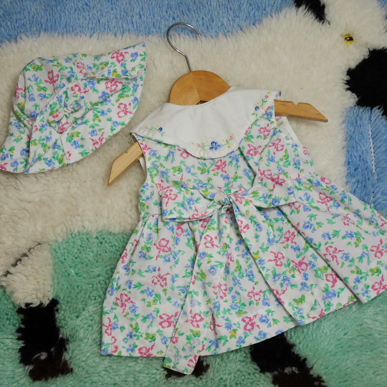 セットの帽子は、フロント側のツバが上向きに折れ、リボンのモチーフが付いたそのディテールがまさに当時によく見られたディテールで魅力的。ワンピースと同様の素材なため使うたびにお洗濯が可能なところも嬉しいポイントかと思います。