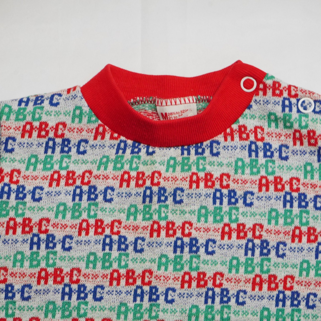 赤・青・緑を用いたカラフルでポップな色合いがまさにザ・アメリカンキッズな一枚。編みながら模様を完成させるジャガードは、色褪せや割れなどプリント物によく現れる劣化があまりないので現状のクオリティをキープできるのは高ポイントかと思います。