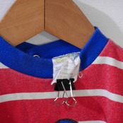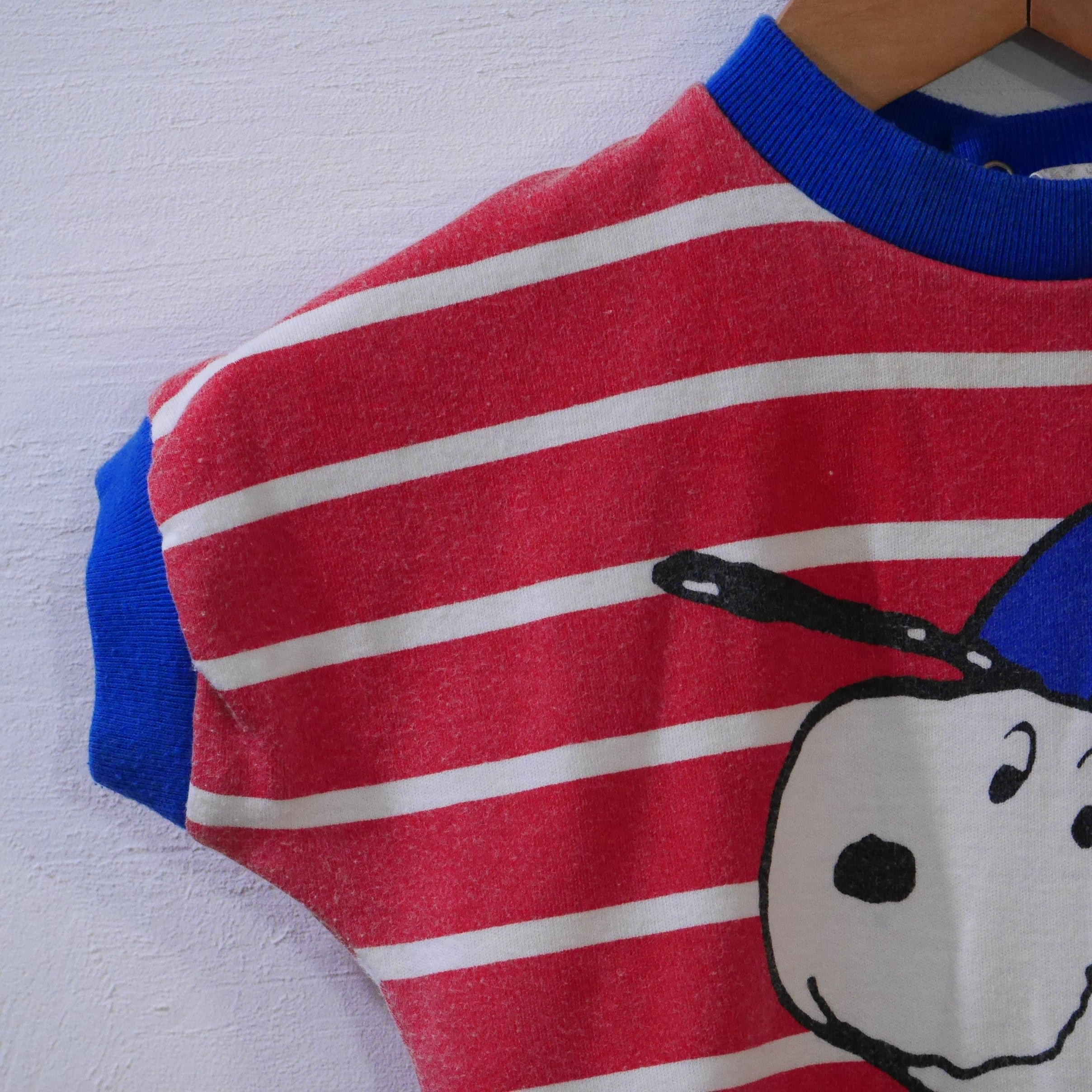 赤のボーダーボディに野球スタイルのスヌーピーがプリントされたボーイッシュな一枚。
