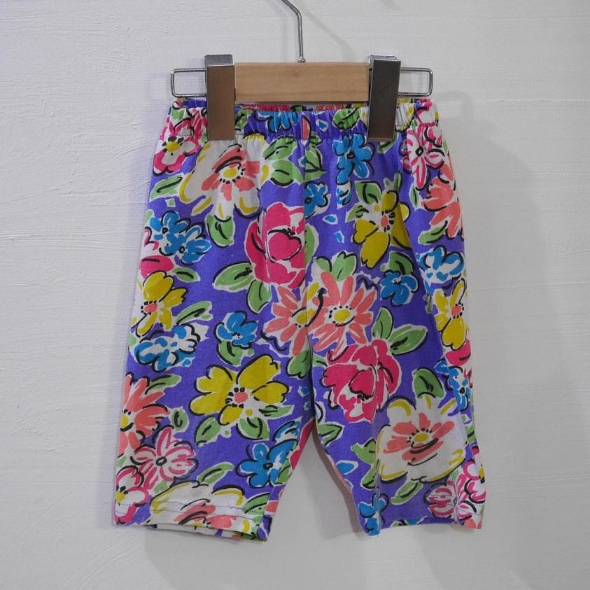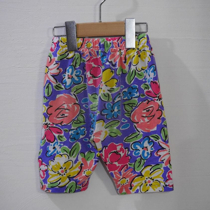 ラベンダーカラーをベースとし、アート風なお花柄というこの当時らしい雰囲気がたまらない一枚。トップスは裾の花柄への切り替え部分がチュニック風になっているので、大きめに着てTシャツワンピースとして着るのにも向いているシルエットです。