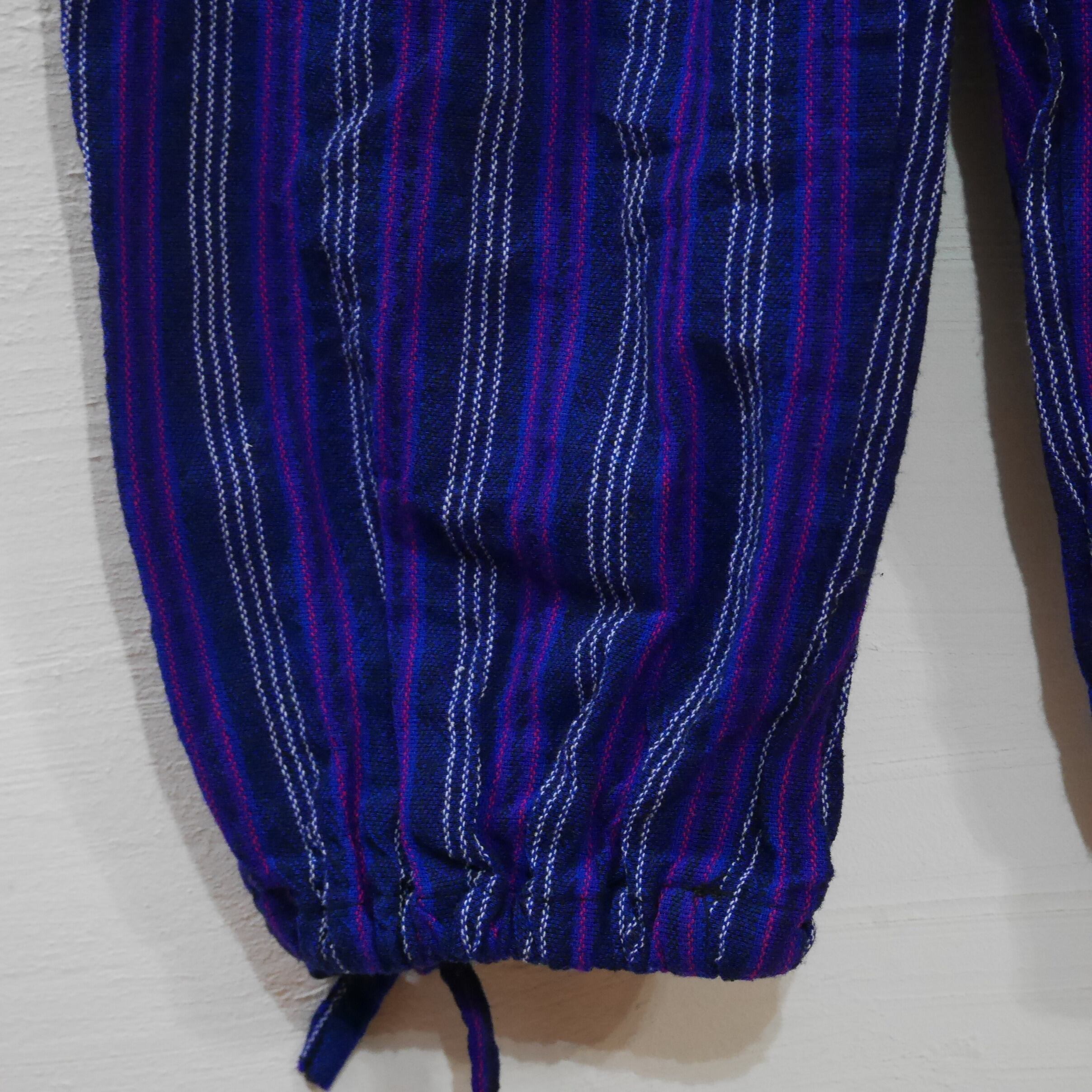 織物特有のテキスタイルと、サイドポケットのカーゴパンツデザインとの〈伝統〉と〈現代〉がMixになった独特の雰囲気がオシャレでたまらない一枚。