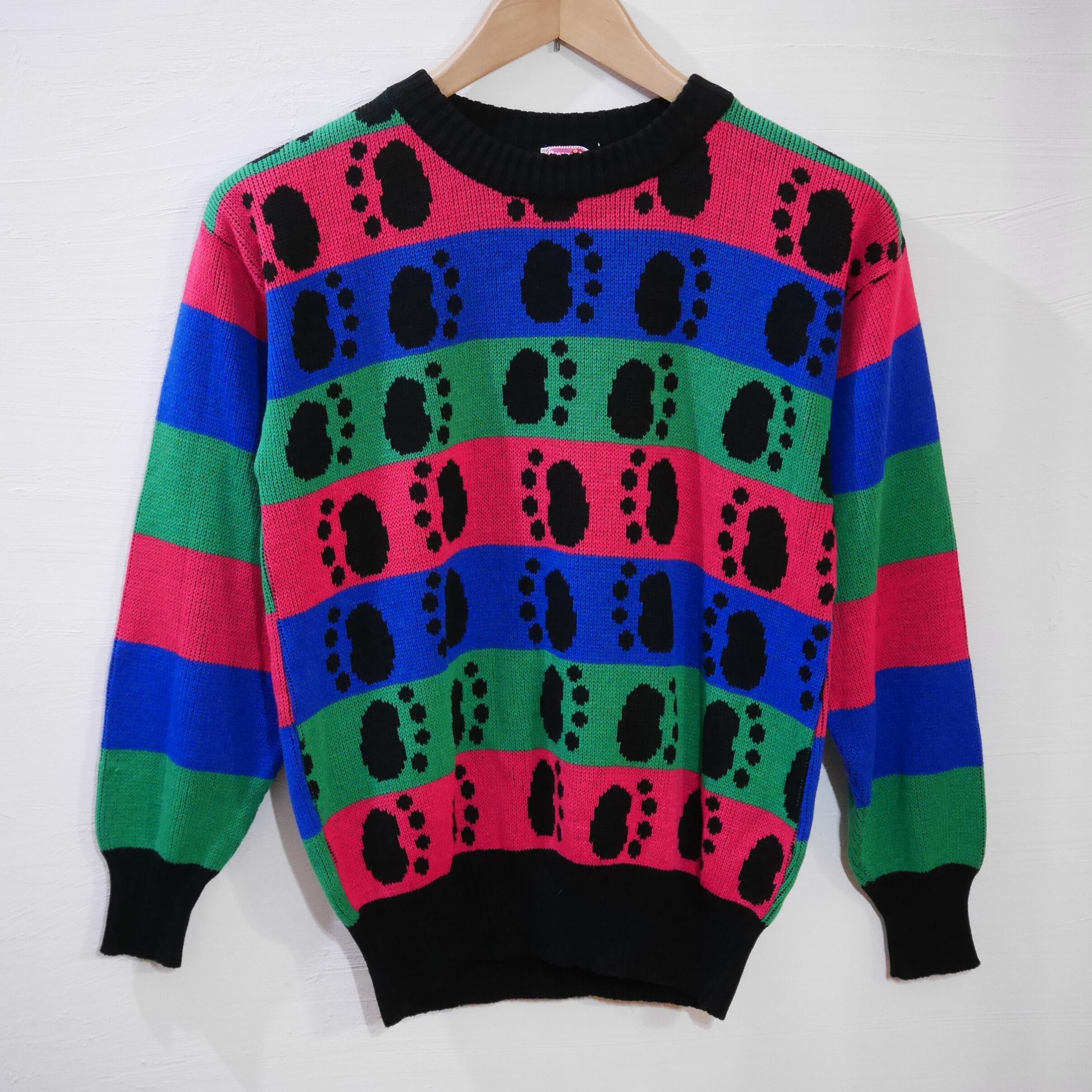 80s animal foot motif knit sweater